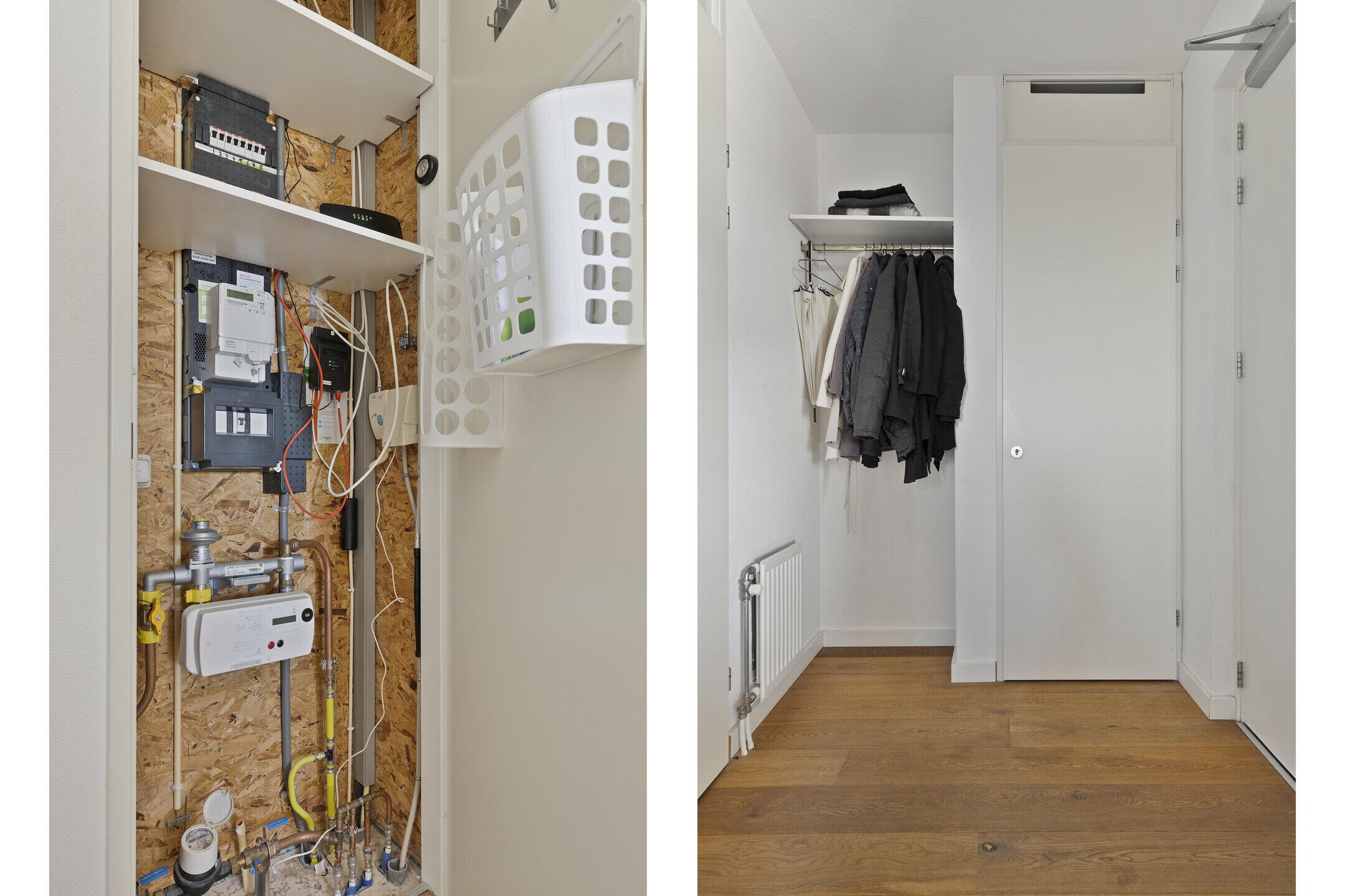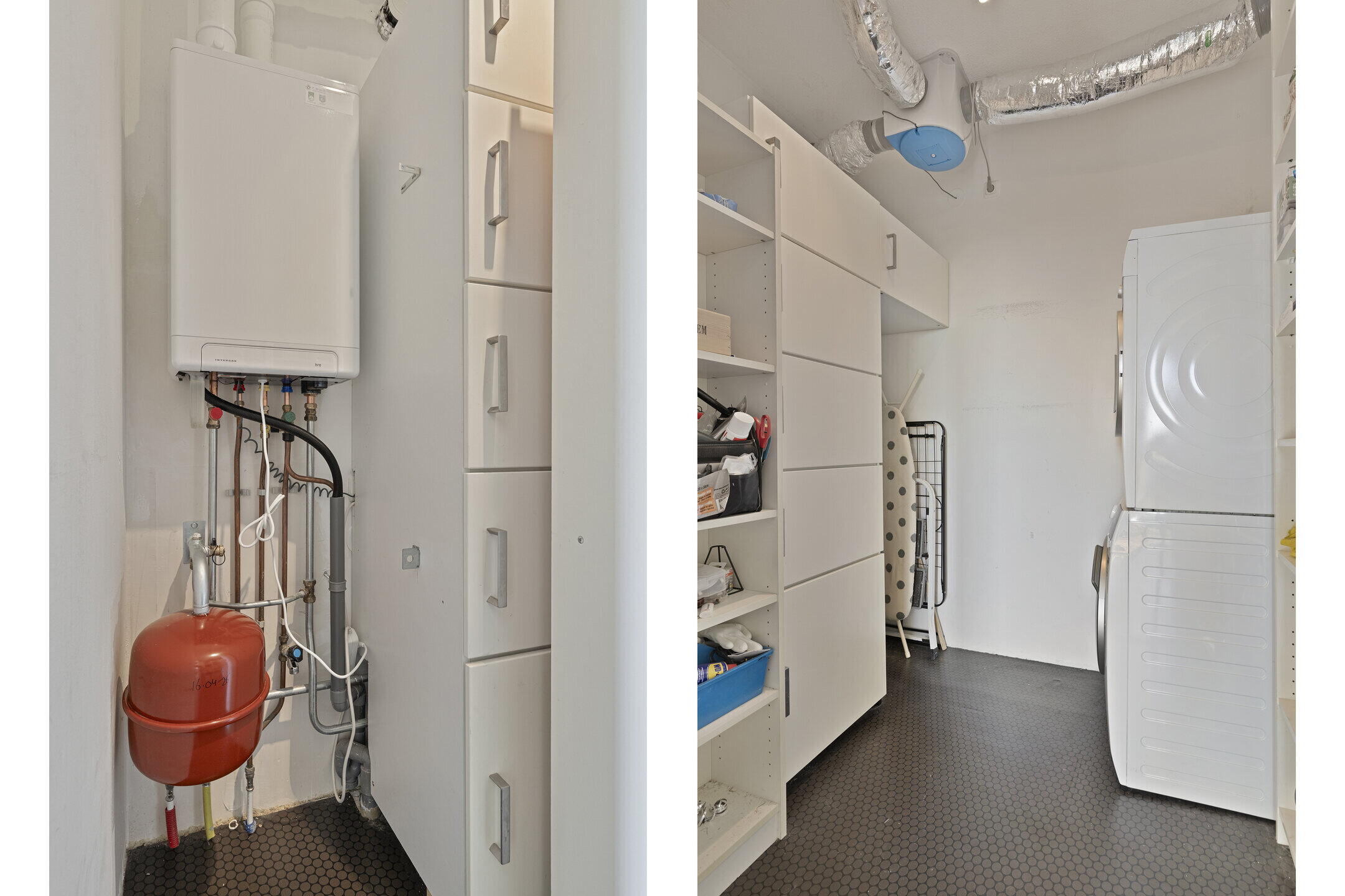 Tegenover de keuken is de praktisch ingerichte “technische ruimte” met aldaar de opstelling van de cv-ketel, het witgoed en de ventilatie unit. Voorts veel berg- en provisieruimte.